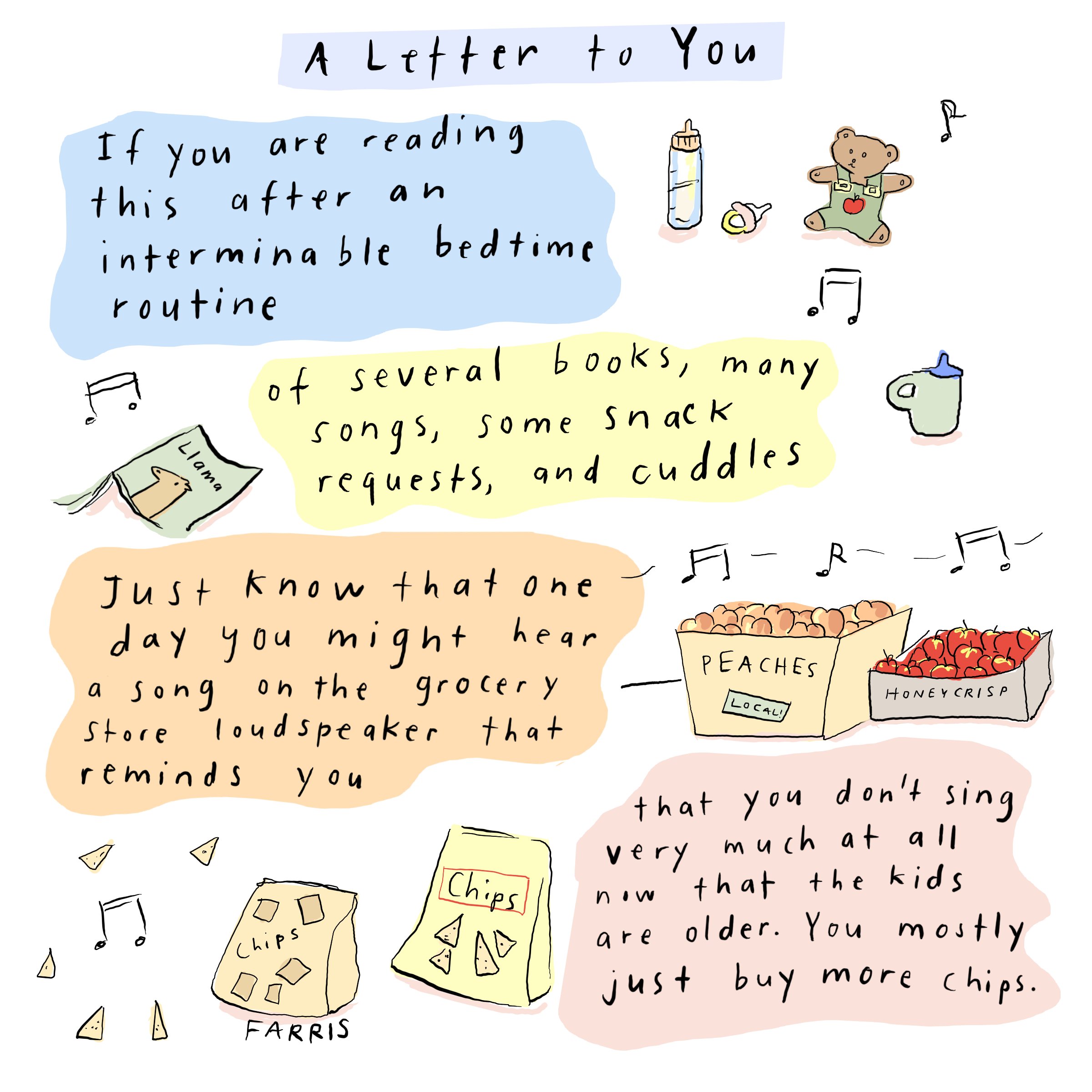Love this. Definitely in the interminable bedtime universe and trying to savor it. My three year old calls out a lot and night and requests me to hold her hand. ❤️ but yes, sometimes my sanity is called into question in this season with two littles.