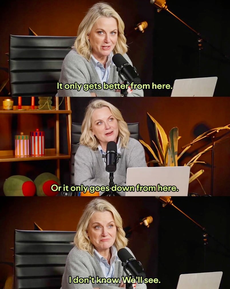 (Photos of Tina Fey and Amy Poehler from Amy’s podcast Good Hang.)
